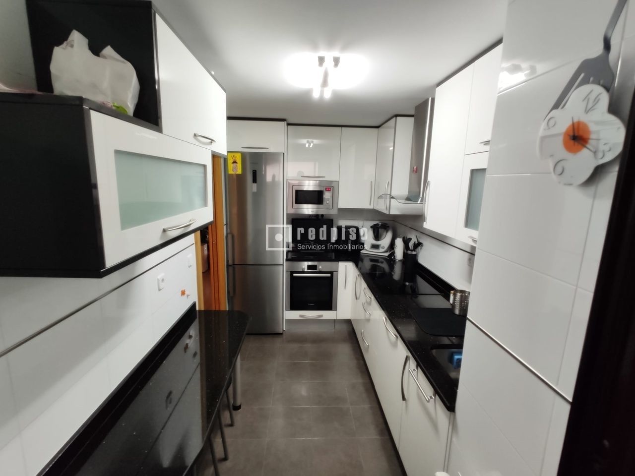 Redpiso Móstoles Sur ofrece en exclusiva precioso piso a la venta en la zona PAU de Móstoles. Esta espectacular vivienda seminueva con sistema domótico, cuenta con 200 m2 construidos, de los cuales 116 m2 corresponden a la vivienda y el resto a dos plazas de garaje y trastero incluidos en el precio de venta. Su distribución se compone de salón luminoso con salida a terraza abierta cuyas visitas dan a las zonas comunes de la urbanización, preciosa cocina office completamente equipada y con puerta corredera, compuesta de muebles altos y bajos lacados en blanco, encimera de mármol en color negro, conjunto de electrodomésticos empotrados a composición modular, mesón de mármol con cuatro taburetes y acceso a tendedero cubierto con cerramiento de aluminio y lamas, completamente amueblado y con armario empotrado de dos cuerpos; 4 dormitorios con armarios empotrados y revestidos, 2 baños en pasillo con sistema de altavoces (bluetooth) dotados de platos de ducha (uno de ellos con mampara) y con conjunto de muebles lavabos con cristal templado, pasillo distribuidor y hall de entrada. Toda la vivienda goza de excelentes calidades ya que dispone de ventanas de aluminio climalit, paredes lisas en todas las estancias, suelos de tarima, puertas de madera maciza, calefacción de gas natural con consumo individual, telefonillo con video cámara, sistema de aire acondicionado por conductos y módulo wifi, persianas y toldos motorizados mediante sistema domótico, calefacción con termostato inteligente y válvulas termostáticas inteligentes y sistema de iluminación domótica en puntos de luz. Además dispone de puerta principal acorazada y ascensor. Ubicada en entorno residencial, la vivienda se encuentra en urbanización cerrada, contando con zonas comunes, parque infantil, fácil acceso a personas con movilidad reducida; y por si esto fuera poco, está muy bien comunicada con múltiples servicios comerciales y sanitarios, líneas de autobuses y línea de Metro Sur Manuela Malasaña. No dude en visitarla. Disfrute de las posibilidades que le ofrece nuestro departamento financiero DCredit a la hora de tramitar su hipoteca. Puede realizar visita virtual del inmueble en nuestra página oficial www.redpiso.es